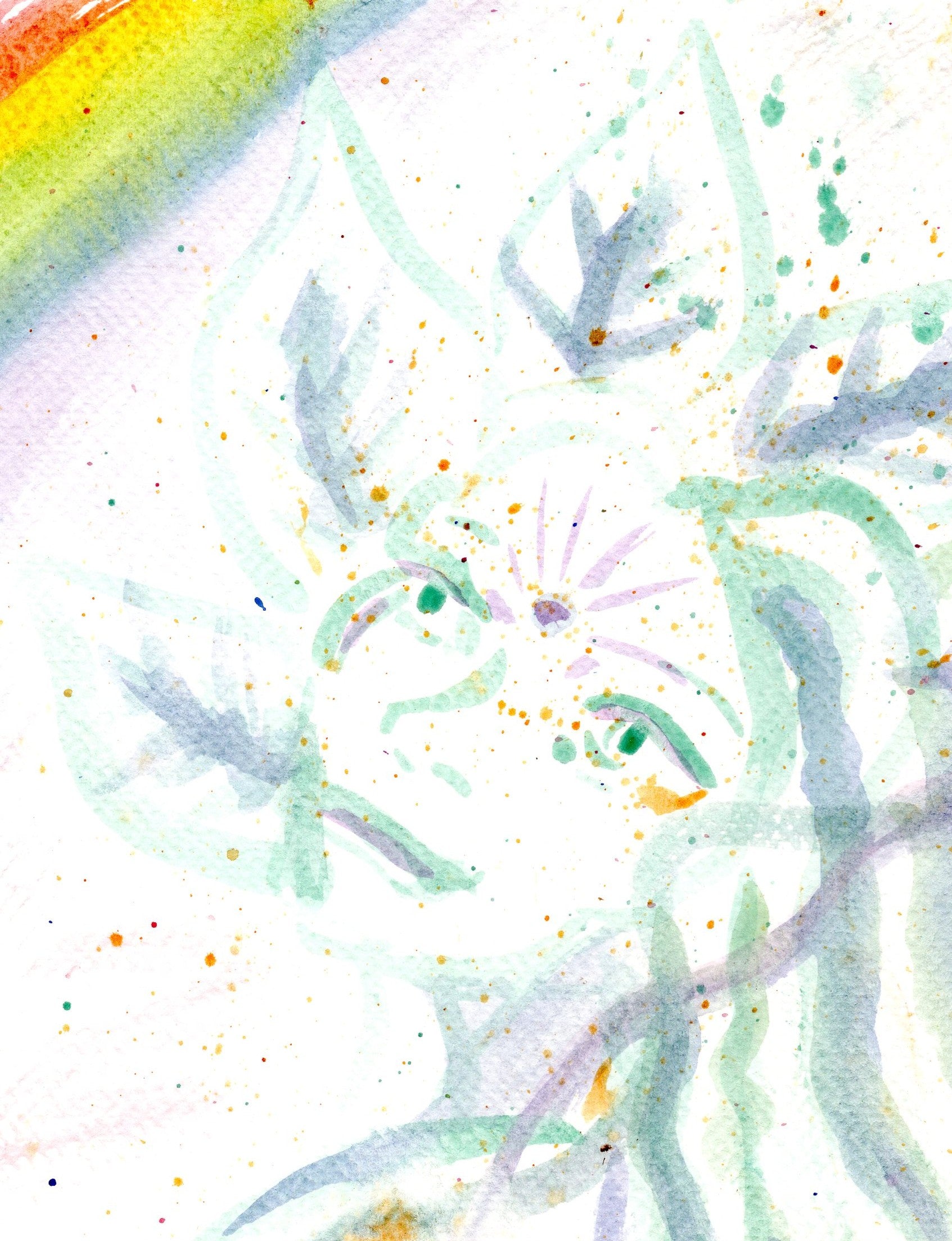 Print of an original painting that was made collaboratively on the Big Island of Hawaii. I set up a group painting table in a park, and some lovely lady turn some abstract colors into a portrait of me! I was so flattered. A friend of mine added the rainbow border and I contributed some splashes of paint. This one is so special to me, I don't think I'll be able to sell the original.