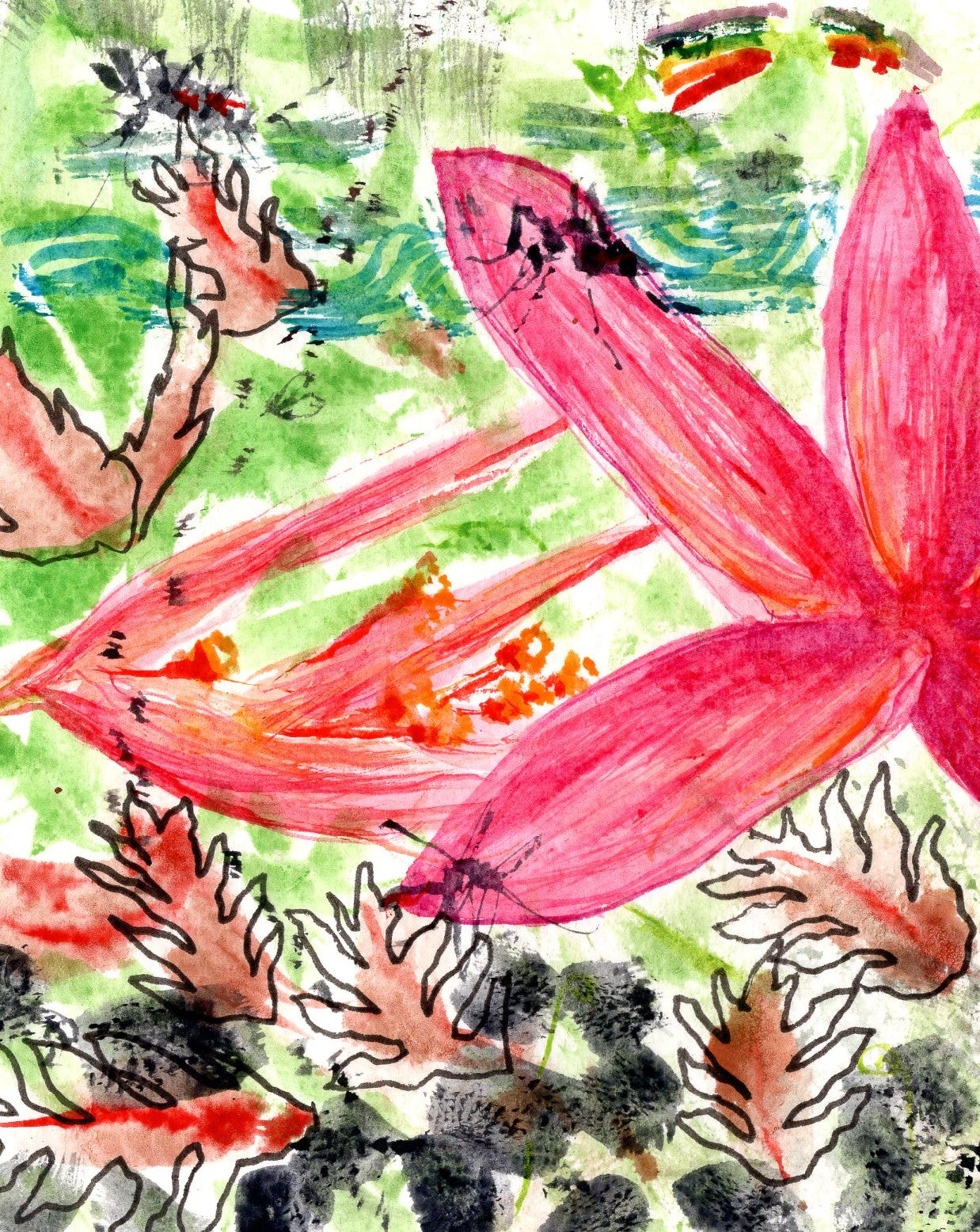 Print of an original painting called "The Real Hawaii" because it contained mold from the humid jungle environment and blood from smashed mosquitos. Yes, the farm I stayed at on the Big Island was gorgeous, but it the conditions were pretty intense. It was an off-grid permaculture farm where there were only screen doors and windows on all the buildings. You can see it on my vlogs on Youtube ;)